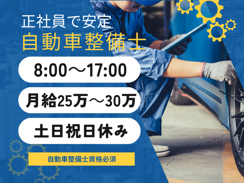 仕事の内容 ★アピールポイント★ ・2級ジーゼル自動車整備士資格必須! ・自動車整備士の仕事! ・イチから整備のことが学べる! ・土日祝日はお休み! ・平均月給は25万~30万円! ー 【仕事名】 2トン~10トン超クラスの貨物自動車の点検整備、修理記録の管理等をお任せします。 【仕事内容】 ・点検 ブレーキはしっかり機能するか、オイルや、タイヤの状態は良好かなど自動車が安全に走行できるかをチェックします。 ・修理 エンジンや電気系統などを保守点検し、又、ドライバーからの不具合箇所を聞き、問題がある箇所を特定しながら部品の交換や修理を行います。 ・修理記録管理 修理を行った車輛の状態、箇所や、日時を記録し管理します。 ・回送業務 他社整備工場に車輛を移動させるための回送業務を行います。 ━─━─━─━─━─━─━─━─━─━ ★柏崎営業所ってどんなところ? 社員は20名。 人数が少ない分、会話も多く、比較的ゆったりとした和やかな雰囲気です。 応募前の職場見学も可能ですのでお問合せ下さい☆ ★入社後の流れは? 今の整備社員より業務を引き継いで頂きます。 管理記録や、やったことの無い修理等あれば丁寧にお伝えしますのでご安心を。 ★どんな人が向いている? 運送会社ですので、やはり車好きが多く在籍しています。 意外とみんな整備の知識ももっています(笑) ★未経験でも大丈夫? 2級ジーゼル自動車整備士資格は必須とさせていただいています。 その他の大型自動車免許やフォークリフト資格は入社後に、資格取得支援制度の利用で取得可能です。 ですが「何もかも未経験で資格は無いけど、どうしても興味がある!」という方は、お電話でご相談下さい。 ー 『このお仕事の魅力』 ○車好き必見、大型貨物自動車の整備士 ○運送会社のトラックメカニック ○大型免許が無くてもOK・普通免許で応募はOK ○資格取得支援制度の利用で取得可能 ○応募前の職場見学可能 ○マイカー通勤OK ○土日祝日休み(土曜は隔週) ○月給25万~30万円 ○昇給・賞与有 ○正社員で安定して働ける