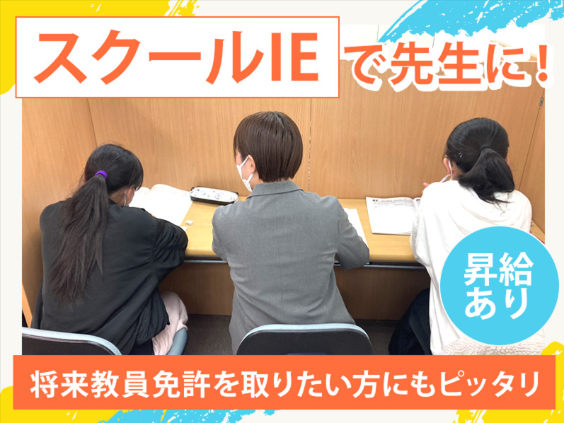 仕事内容 やる気スイッチグループの【スクールIE】で 生徒2名に対して学習指導を行っていただきます。 ★20代~60代の幅広い世代が活躍中! ★週1日~OK! ★未経験歓迎!高学歴でなくてもOK! ★小中高の対象学年も選べます♪ 【具体的には...】 ・学校の予習復習 ・中間テストや期末試験対策 ・受験対策 ・採点 など 研修もしっかりとあるので、 塾講師が初めての方でも安心して始められます! 文系・理系どちらでもOK! おすすめのPOINT! \就活に役立つスキルが身に付きます!/ 生徒に対して分かりやすく伝える必要があるので、 コミュニケーションスキルや 文章を考えるスキルなど 就活で役立つスキルが身に付きます! 未経験から始められるので、 将来学校の先生を目指している方にもピッタリです! また正社員登用制度ありなので、 まずはアルバイトで始めて社員になる!ということも可能です◎ \あなたの経験が活かせる!/ 現在、20代の大学生から60代のベテランまで、 広い年代のメンバーが在籍しています。 「次も来たくなる授業にしよう!」 「生徒にあわせてどんどん先に進もう!」 など、あなたの経験を活かしながら 自分らしい授業にしてください◎ ・聖徳⼤学 ・東京理科⼤学 ・流通経済⼤学 ・東邦⼤学 上記⼤学の在学⽣メンバーも⼤活躍中です◎ \⼊社時期、シフトの相談OK︕/ 「どれくらいシフトに⼊れるかまだ分からなくて…」 「新⽣活に慣れてから働きたい…」 など、応募を迷っている⽅もご安⼼ください︕ ⼊社の時期やシフトの調整も相談可能ですので、 少しでも興味があれば是⾮お気軽にご応募くださいね︕