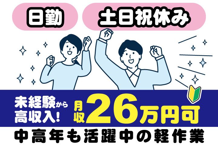 日勤&土日休み!月収26万円の安定収入可能! 50代の中高年も男女活躍中!