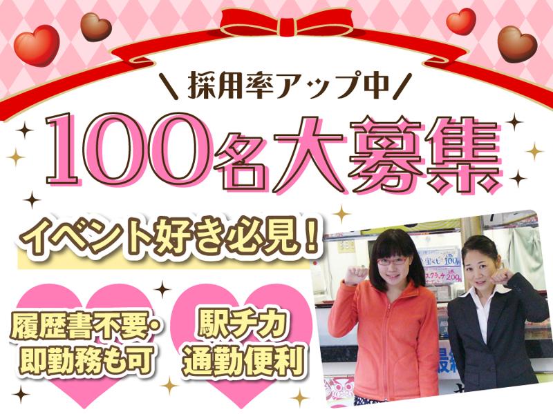 100名大量採用!バレンタイン ジャンボ宝くじスタッフ募集!短時間プチバイト&ガッツリ勤務OK!複数イベント組み合わせ自由◎週5日レギュラー勤務大歓迎!