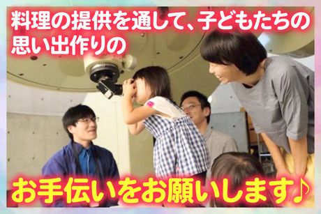 仕事内容 “泊まって 遊んで 食べて 星をみる”「星の子館」について 建築家の安藤忠雄さんが設計した、 宿泊型児童施設「星の子館」は 姫路市青山にある全国でも珍しい施設です。 豊かな自然に囲まれた大型児童館として、 子どもたちが遊び、泊まり、天文台で星を観察できる複合的な施設となっています。 今回は施設内にあるレストランでの調理スタッフの募集です。 飲食店での勤務経験がある方は大歓迎です! ■主な特徴 多様な施設:どくしょルーム、プレイルーム、別館なかよしホールがあり、乳幼児クラブなどの児童厚生事業を実施しています 天文台:兵庫県で2番目に大きい大型天体望遠鏡を備え、家族で夜空を観察できます 宿泊施設:約100人が宿泊可能な設備を完備しています レストラン:「キラキラ☆レストラン」では、地産地消にこだわった食事を提供しております 【ホームページ】 https://ssl.himeji-hoshinoko.jp/ 「星の子館」について 宿泊型児童館内のレストランで、 キッチン業務をお願いします。 【具体的なお仕事】 ★食材の仕込み(野菜を刻むなど) ★調理(焼く、煮る、茹でる…さまざま!) ★盛り付け、提供 料理はカレーやオムライスといった定番の洋食メニューから、 うどんやかつ丼といった和食など様々。 メニュー数は朝食:2種類、夕食:5種類、 昼食も提供するパターンが決まっておりますので、 スグに覚えていただけると思います。 難しい料理に関しては、料理長の補佐をしていただきます。 勤務当初は盛り付けや洗い場のお仕事を通して、 職場の雰囲気に慣れていただき、 少しずつ調理業務を手掛けていただければと思います。 30代・40代・50代の女性が中心に活躍中★ 当施設をご利用される方は、平日は未就学児をもつお母さん、土日はご家族連れが多いです。 また、宿泊される方も小学生のお子さんをお連れしたご家族や、修学旅行に使われる高校生など多岐にわたります。 お子さんの明るい笑顔が絶えない朗らかな空間ですので、 職場の雰囲気も非常に明るく、 滅多に退職者の出ない職場です。 現在は30代・40代・50代の子育てが落ち着いた女性が中心に活躍中★ ファミリーを中心に、天文ファンの方など、 老若男女幅広いお客様が来られる施設で一緒に働いてみませんか?