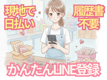 選考プロセス ―――――――――――――――― ⭐誰でも「SNS」でカンタン登録 ―――――――――――――――― 面接・履歴書不要でカンタンに 登録できます♪ 【登録希望者はLINEで!】 ≪WEB応募24時間受付中≫ ――――――― ⭐応募手順 ――――――― ✅アカウントをショートメールで 送付します。 ✅友達追加! あとはSNSのやりとりだけで 登録が完了! 履歴書不要!お気軽にお問合せください