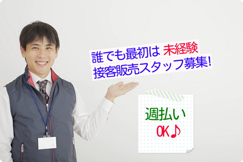 仕事内容 家電販売未経験でもOK!! 【おススメポイント】 ✅未経験者歓迎 ✅転勤なし ✅ノルマなし ✅残業ほぼなし ✅学歴不問 ✅事前の職場見学可 ✅週払い対応あり ✅完全週休二日制(平日がお休み) ✅入社お祝い金3万円(社内規定あり) 冷蔵庫や洗濯機、調理家電やテレビ、 理美容家電等、身近な生活家電のご案内です。 「一人暮らしのまとめ買いがしたい」 「冷蔵庫の調子が悪いから買い替えたい」 「最新のテレビに興味がある」等々 お客様のニーズにあった商品をご紹介したり、 ご自身がお勧めする商品をご提案したり、 お客様とのコミュニケーションを楽しみながら出来るお仕事です。 先輩たちも最初は家電に詳しくありません。 お仕事をしていくうちに覚えていって詳しくなりました。 困った事があれば、先輩社員に相談できるので、安心です。 <接客販売の流れ> ご来店されたお客様に積極的にお声掛けをお願いします。 お探しの物をお聞きして、 性能や特徴等をお伝えして 販売業務を行ってください。 接客業務のない空いた時間は 展示商品のチェックや 各家電製品の知識拡充をお願いします。 ◎契約時間に合わせて終業となります。 長時間の残業が発生することはほぼなく、 サービス業の中でも残業が少ないお仕事になります。 接客が好き、販売が好き、コミュニケーション能力を活かしたい、 何より家電製品が好きな方・・・ご応募お待ちしています!! 【弊社アピールポイント】 ・来社不要のWEB面接対応 ・履歴書不要(面談時にお聞かせください) ・土・日・祝日も電話対応可 ・派遣スタッフさんの就業店舗を定期的に巡回。 お仕事についてのお悩み事やお困り事があればご相談ください。 ・契約延長前提のお仕事をご紹介 契約期間が3年を超えた場合の無期契約対応もさせていただきます。 ・定年制なし。 ・福利厚生は業界最大のベネフィットワンに加入。 各種通信講座割引やカルチャースクール割引、旅行割引等々 アイ・フロントメンバーがご就業後の皆様をしっかりサポートします 【服装】 白Yシャツ、黒パンツ、黒靴、ベスト貸与