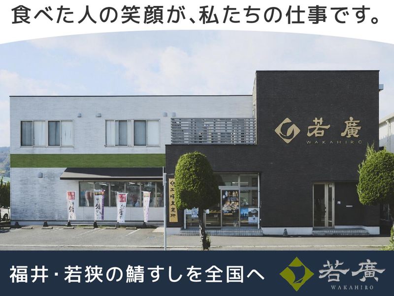 仕事内容 未経験から事務デビュー大歓迎 安定企業で長く働きたい方に◎ 残業ほぼナシ&完全週休2日制 福井名物で有名な、 焼き鯖すしを製造・販売する会社での 一般事務のお仕事です。 全国の百貨店へも出店中! 自社商品の魅力を全国のお客様へ 一緒に届けませんか? 職場見学も実施中♪ ※採用者が決定次第、募集締め切りです。 ╭─────────────── ⏩0770-53-3844 (採用担当:永島)まで 電話でのご応募や、 お仕事内容のお問い合わせも大歓迎♪ ╰─────────────── <お仕事内容> ⏩データ入力や書類作成などの事務作業 ⏩電話・メールでのお問い合わせ対応 ⏩社内スタッフとの連携やサポート ✅未経験の方も安心♪ 業務は一つずつ丁寧に教えます! 難しいスキルは不要! 基本的なPC入力ができればOK◎ ※業務の詳細は面接時に 丁寧にご説明しますので、 事務経験が無くて不安という方も まずはお気軽にご応募ください◎ ┏━━━━━━━━━━━━━━┓ 無理なく続けられる環境です! ┗━━━━━━━━━━━━━━┛ ・完全週休2日制(シフト制) シフトにより土日休みも可能 ※土日祝に勤務の場合は手当あり◎ ・業務は事務仕事のみ◎ 他部署との連携が大切なお仕事ですが、 部門間できっちりと業務が分かれているため 事務仕事に集中して勤務出来ます。 ・自由に使えるエスプレッソマシンあり♪ ちょっとしたリフレッシュに◎ 個人ロッカーも完備! 《働くスタッフの声》 ▼初めての事務職に挑戦。 地元の名物を全国へ届けたい。 そんな想いで応募を決めました。 事務職は初めてでしたので PCスキルなど不安なことはありましたが、 困ったことは全員で助け合う風土のおかげで 分からないことも相談がしやすく、 日々の成長とやりがいを感じながら働けています。 (未経験/20代女性スタッフ) ▼好きだった焼き鯖すしをきっかけに 応募しました。話しやすい方が多く、 日頃からコミュニケーションが 取りやすい環境です。 バックヤードで支える事務のお仕事ですが、 お客様からの感謝を直接頂けることもあり 自身の仕事がお客様に届いていることを 実感できることがやりがいに繋がっています。 (経験者/40代女性スタッフ) ༶ ༶ ༶ ༶ ༶ ༶ ༶ ༶ ༶ ༶ ༶ ༶ ༶ ༶ ༶ ༶ ༶ ༶ 株式会社若廣は「焼き鯖すし」で知られ、 全国の百貨店などで 展開している食品ブランドです。 鱒の寿しや柿の葉寿しなど、 北陸・若狭の食文化を全国へ届けています。 一人の困りごとを、 チーム全体がカバーをする 支え合う雰囲気が根付いており、 事務職が初めての方でも、 安心してスタートできる環境です。 【HP】 ・✦https://www.wakahiro.co.jp/✦・