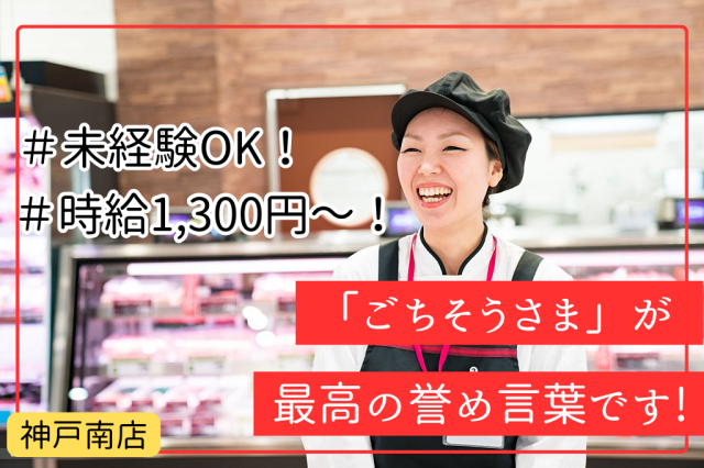週3日~、1日5時間~で相談可!☆お肉の販売・総菜の盛り付け | 未経験OK!時給1,300円~