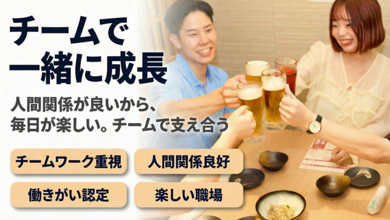 職場環境 【職場環境について】 当社は、新潟県内で3社目となる「働きがい認定企業」に選ばれています。 この認定では、 社員同士が称え合う風土があり、 年次に関係なく責任ある仕事を任せ、 経営ビジョンが現場まで共有されている点が評価されました。