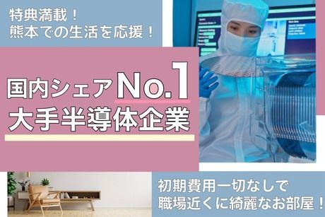 仕事内容 \\いま、熊本の半導体業界がアツい!!!// 南関町にあるきれいな工場! 自動車と半導体、その他家電などを 製造するシステムの設計~製造~販売を行っています! 。.:*☆彡☆彡☆入社した方全員対象☆彡☆彡。.:* ●特別ボーナス総額『16万円』支給します! ※会社規定あり 。.:*☆彡☆彡☆彡☆彡☆彡☆彡☆彡☆彡☆彡。.:* 【手作業での大型装置の組立作業】 ・図面を見ながらネジを締めたり、配管やコードを繋いだりします。 ・ドライバーやスパナ、レンチなど一般的な工具を使用します。 装置の大きさにもよりますが3~10人でのチーム作業です。 コツコツ・モクモク作業が好きな方、 集中して作業をするのが得意な方、 新しいお仕事に挑戦したい方、大歓迎です(≧▽≦) ◎教育について 入社してすぐに研修期間があります。 半導体の事を学べる座学や工具の使い方など 基礎学習が終了し作業にも慣れてきたら、 リーダーとしての役職に就くこともできます♪ ◎出張業務あり! 作業に慣れてきたら、国内外の出張業務が出てきます。 海外のお仕事に興味ある方にもオススメです!! ◎日勤&土日祝休み 日勤8:30~16:30、 土日祝日がお休みの工場さんです。 「土日祝は家族と出かけたい」 「退社後は友達と飲みに行きたい」 「生活リズムを崩したくない」 そんな方にとてもおすすめの職場です(*^▽^*) 仕事とプライベートどちらも ちょうどよく充実させたい方向け! ◎寮のご用意あります 不動産屋さんから借り上げた 一般的な物件を寮として提供いたします。 敷金・礼金・面倒な手続きナシ! 家賃は20,000円程度でお住まいいただけます。 家具・家電もお安くレンタルできますよ♪ (例:冷蔵庫、洗濯機、電子レンジ 3点セット¥3,960) 業務の変更範囲:「会社が定める業務」