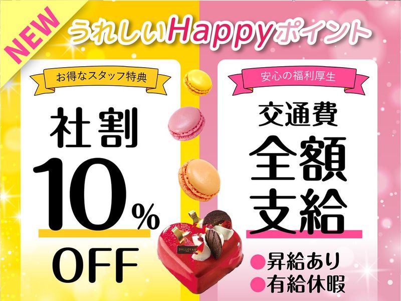求めている人材 【1つでも当てはまる方なら大歓迎!】 ✅未経験から始めてみたい ✅マカロンや洋菓子など、甘い物が好き ✅落ち着いて接客したい ✅かわいい物に囲まれてお仕事したい ✅オシャレな制服のお店がイイ ✅誰かの嬉しそうな顔を見るのが好き ✅週2日~無理なく働きたい etc、未経験でも、 おもてなしの心で対応できればOK! *・・・・・・・・・・・・・・・・・・* 接客業、販売スタッフ、アパレル販売、 バレンタイン接客販売、パン屋、 ドラッグストア、品出しスタッフ、 飲食店、カフェスタッフ、喫茶店、 雑貨販売、飲食店ホールスタッフ などの経験がある方も大歓迎! ※正社員・アルバイト・パート・ 委託・派遣など前職の雇用形態は不問! *・・・・・・・・・・・・・・・・・・* #10代・20代・30代・40代、 大学生、主婦パート・パート主婦・ ミドルまで幅広い世代が活躍中! *・・・・・・・・・・・・・・・・・・*